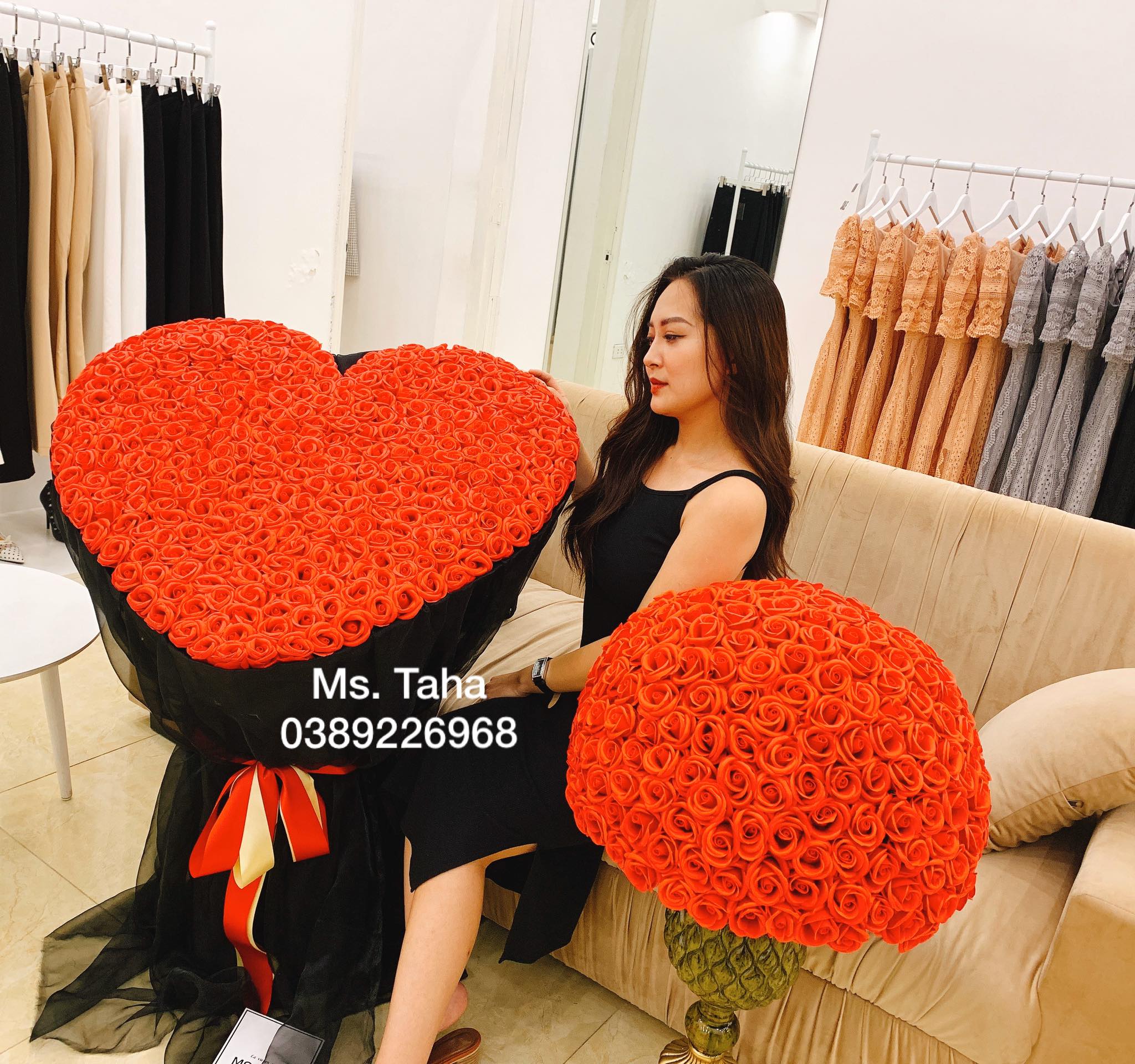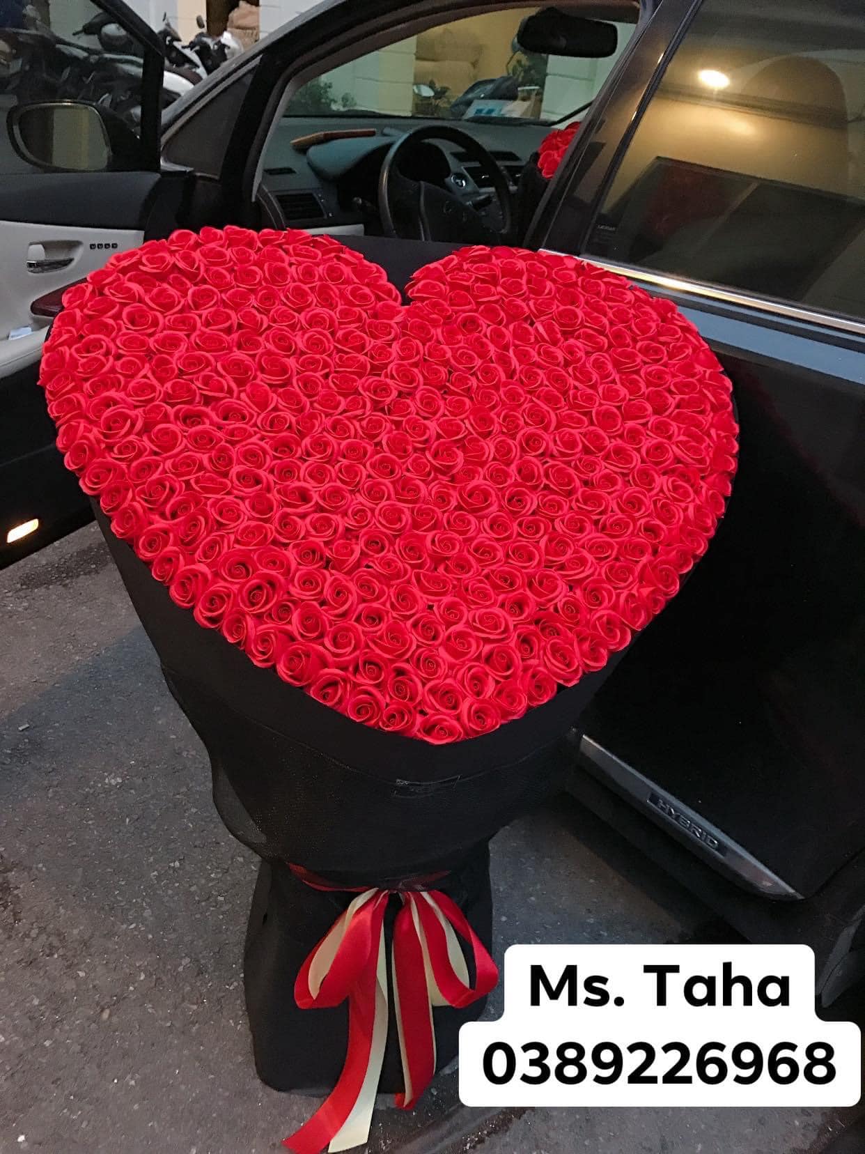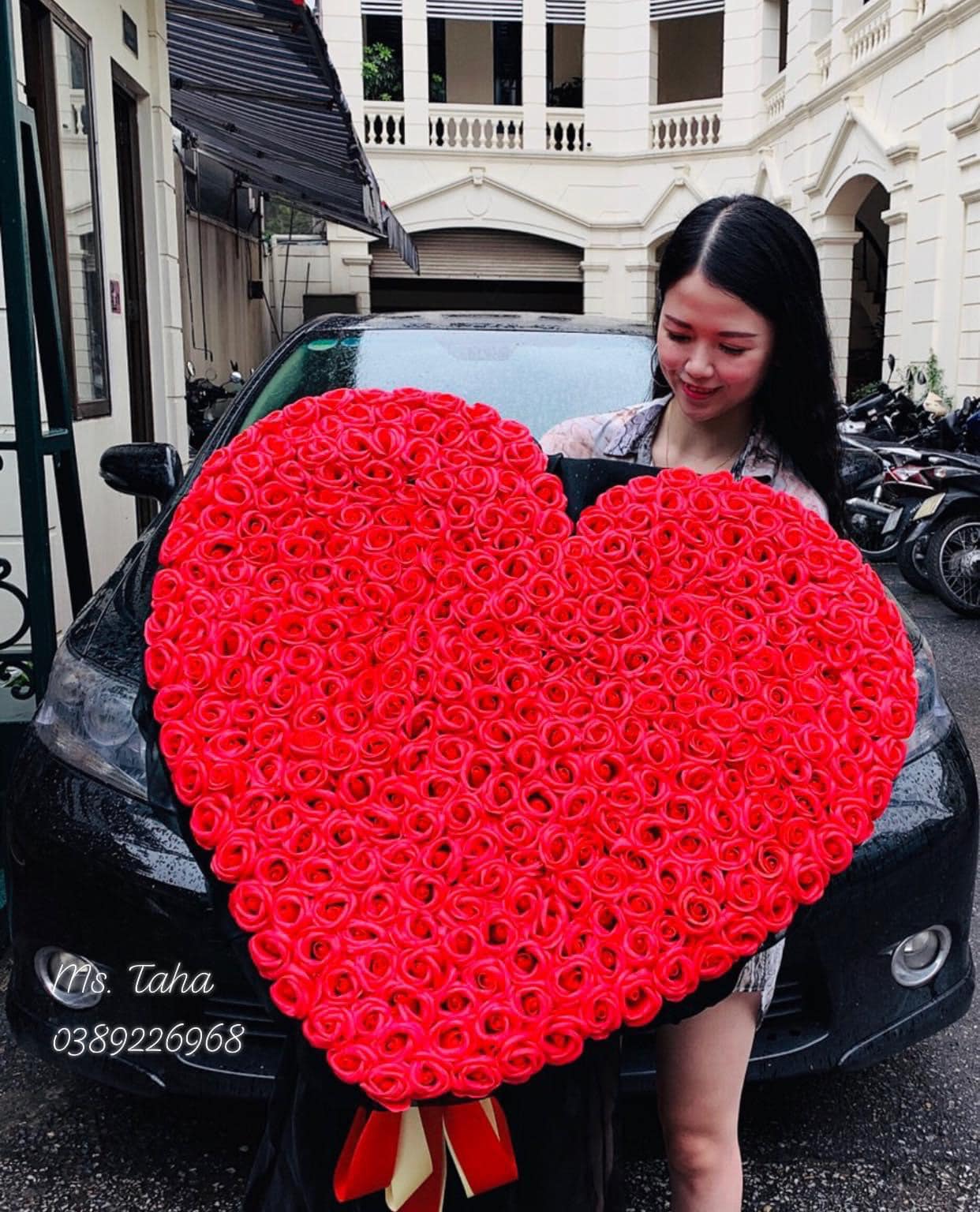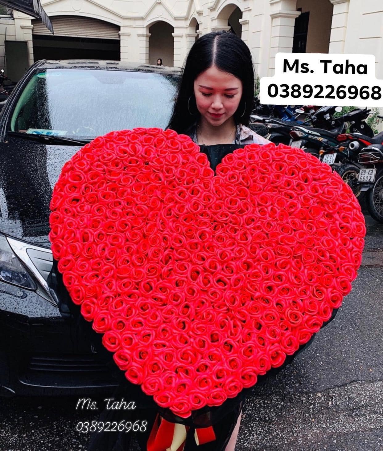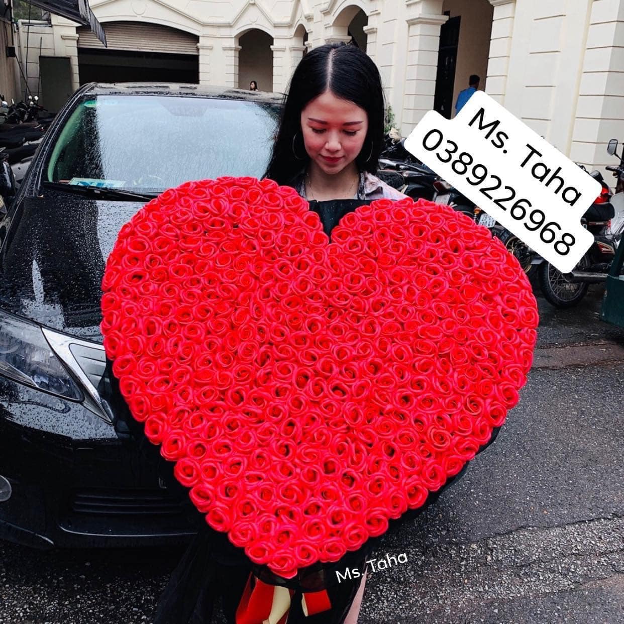 Bó hoa hồng sáp thơm trái tim kết từ 300 bông hoa hồng sáp thơm. Khách có nhu cầu đặt màu hoa khác vui lòng liên hệ sđt: 0389226968.
