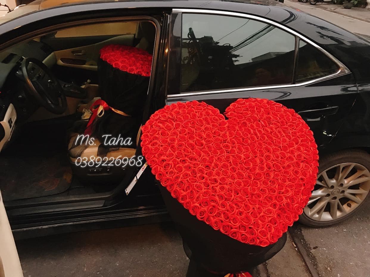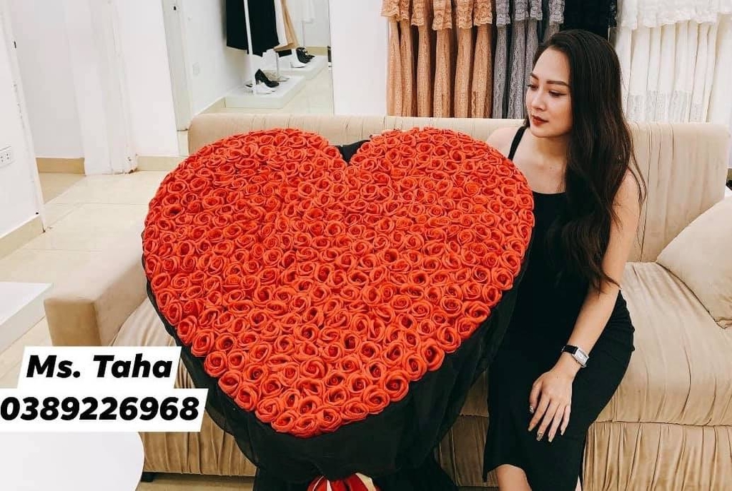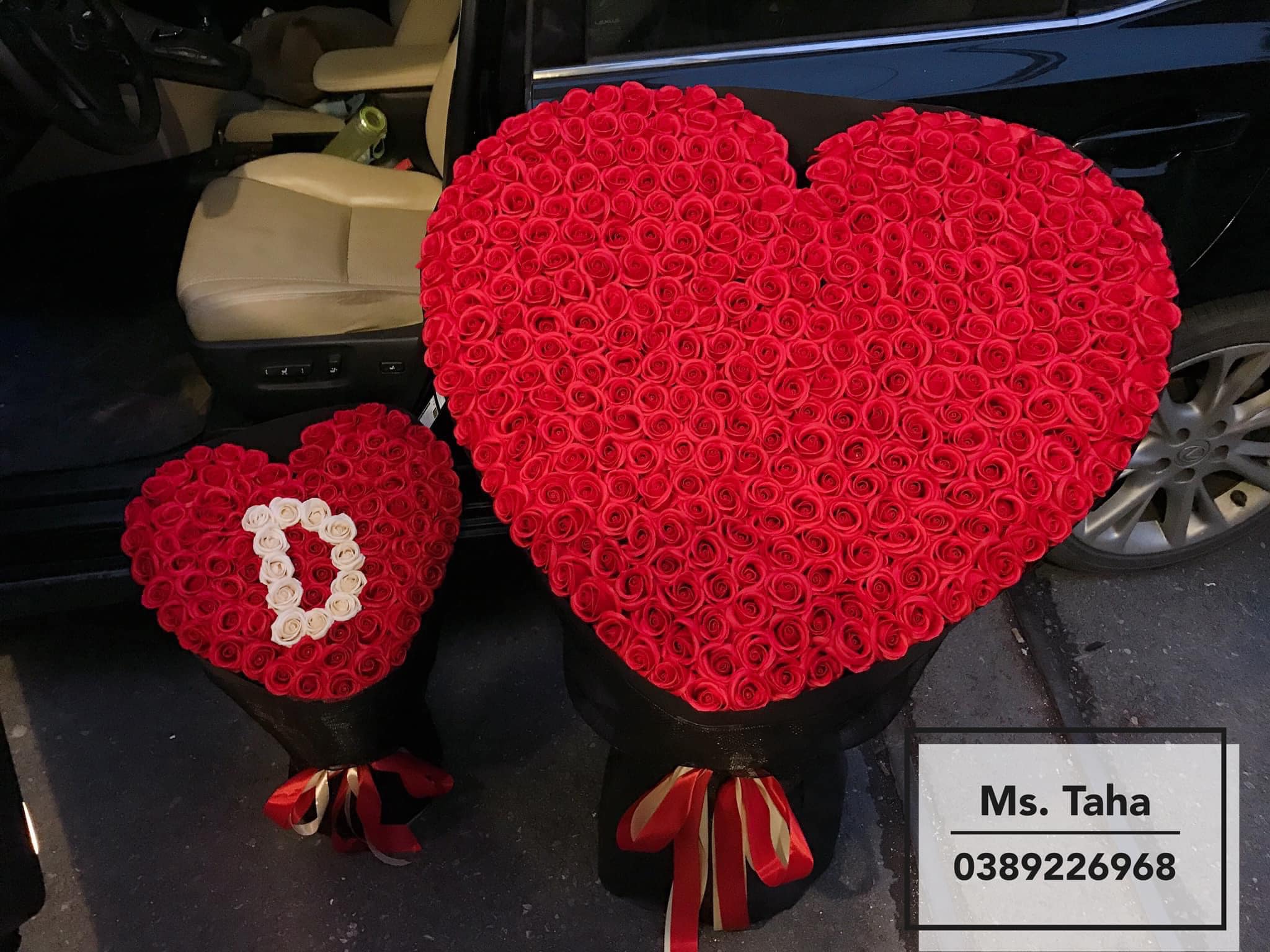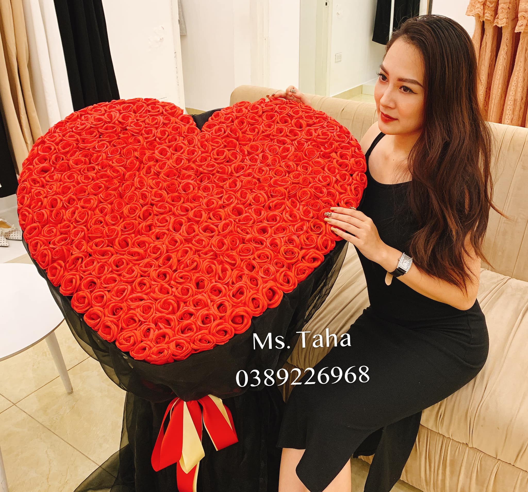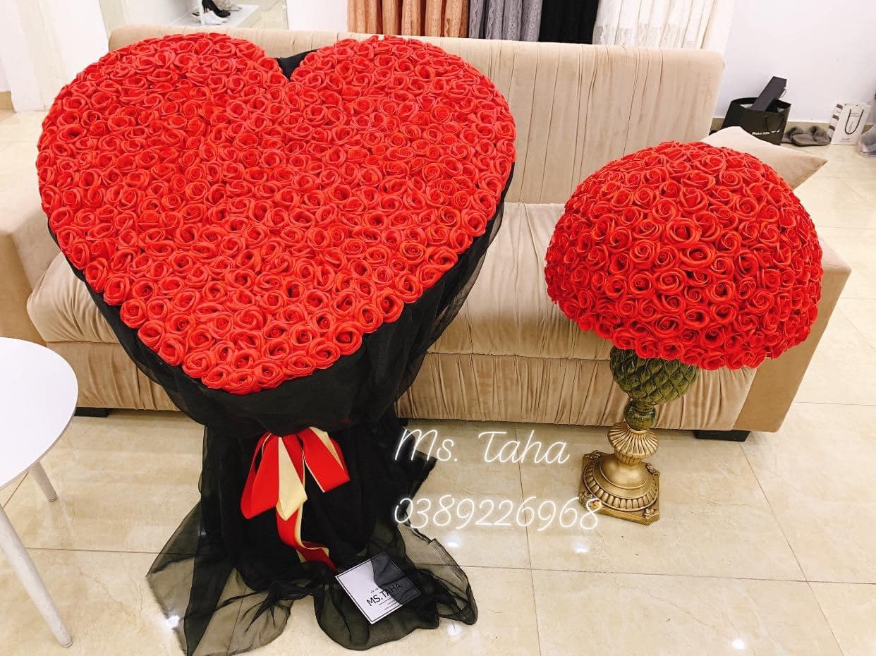 Bó hoa hồng sáp thơm trái tim kết từ 300 bông hoa hồng sáp thơm. Khách có nhu cầu đặt màu hoa khác vui lòng liên hệ sđt: 0389226968.