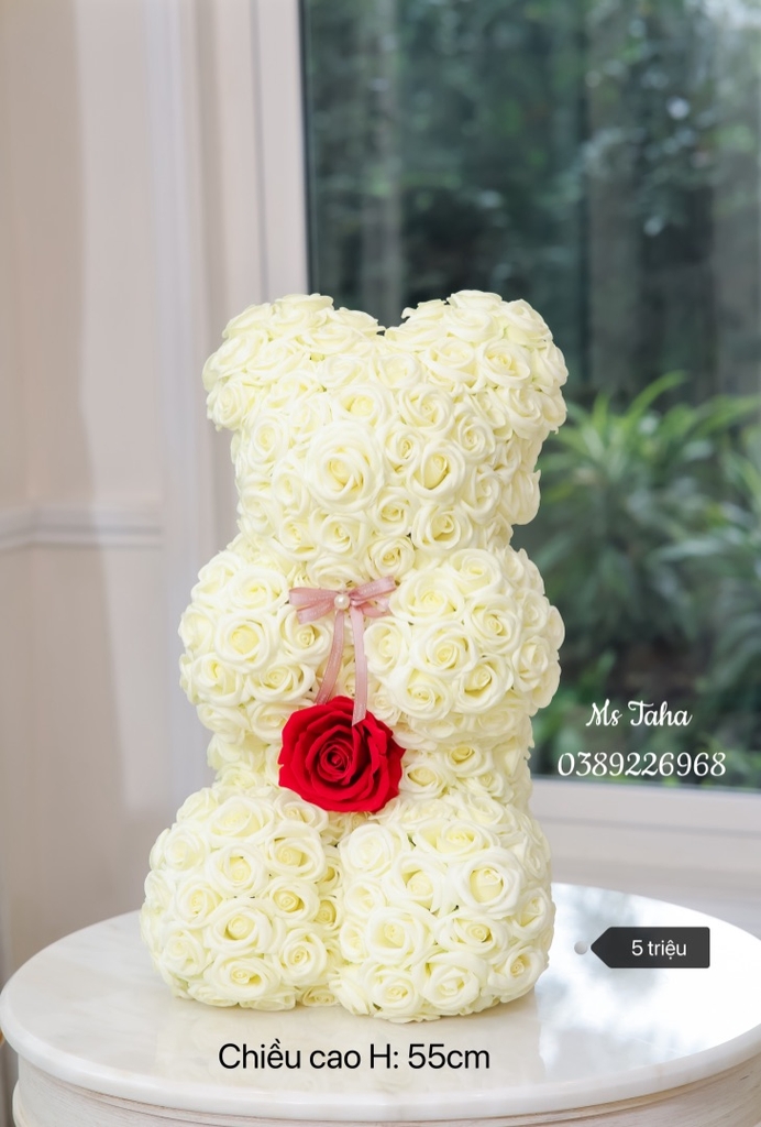 Hoa gấu Teddy ôm hoa được kết từ hàng trăm bông hoa hồng sáp thơm.